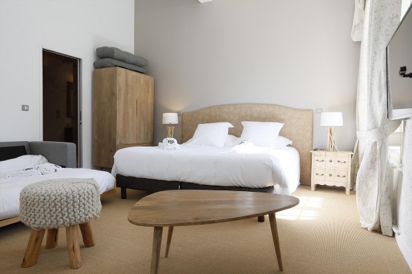 The Domaine includes 44 beds on site for up to 68 guests. There are 2 additional baby-cots available for our smallest guests. There are several family suites with 2-3 beds to accommodate families. Please indicate how many beds you will need and we’ll do our best to fit everyone in the best spot.